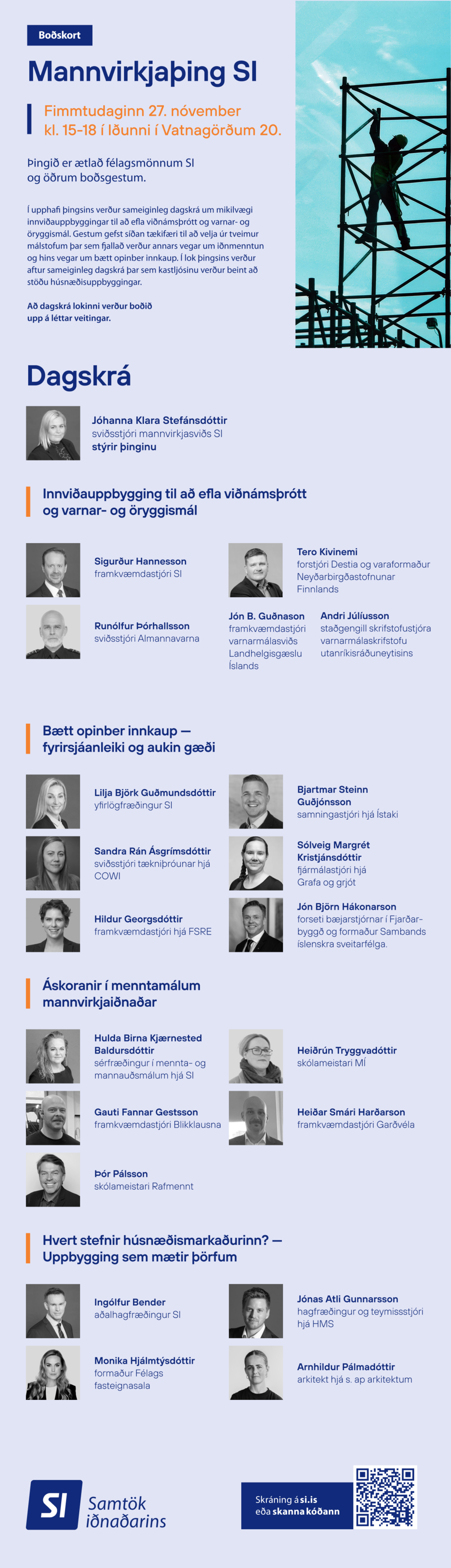 Vegna skipulagningar eru þátttakendur beðnir um að skrá sig með því að fylgja skráningarhlekknum: https://www.si.is/starfsemi/vidburdir/2025/11/27/eventnr/2153